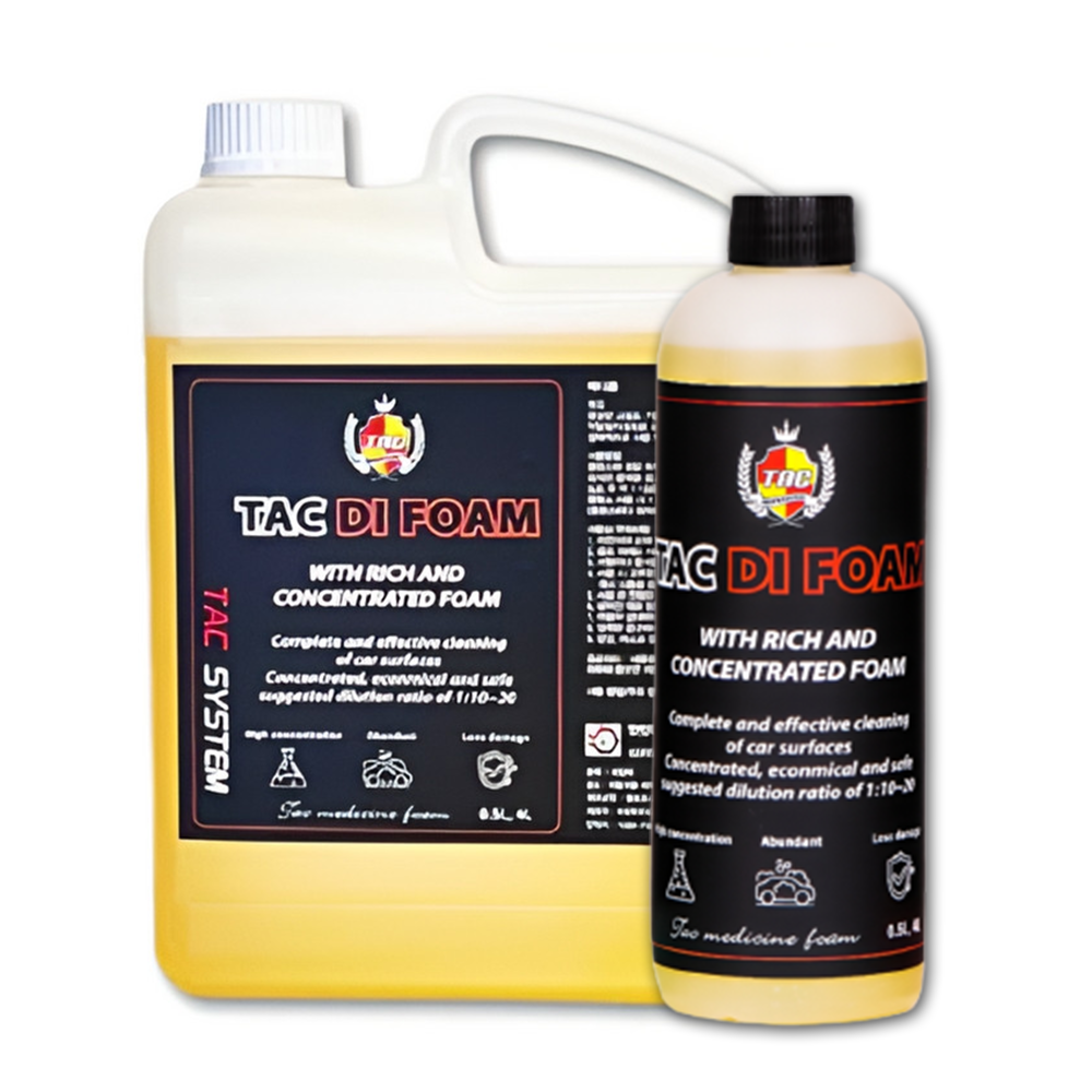 TAC DI FOAM is a type of acidity car shampoo to be safe to use. It is a product to remove organic contaminants on the surface. The ultra high dilution of TAC DI FAM makes for a very cost effective car shampoo. This alkalescent car shampoo formula is safe for all exterior vehicle surfaces and wheels.