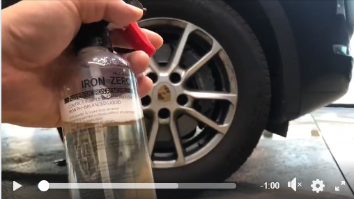 | Iron Zero is a concentrated formula designed to remove ferrous iron deposits from paint pores, glass, and wheels. Ferrous Iron is commonly picked up contamination caused by vehicle brake pads, 'rail dust' from transport, and from construction, and industrial fallout. When applied to a vehicle, the clear acid-free and pH-balanced solution will turn purple once it begins to react with metal or rust particles. |