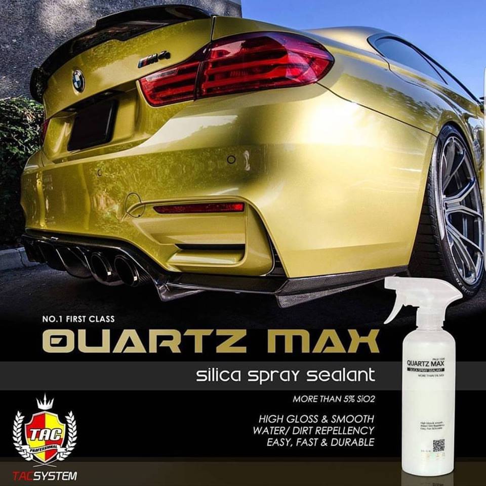 | Product Description: A simple to apply, wipe-on / wipe-off 5% SiO2 silica sealant, leaving vehicles protected and the surface glossy and silky smooth. Quartz Max is a simple streak free way to leave long lasting topical protection to your vehicle exterior surfaces. Product Benefits: Simple wipe on protection. A stand alone durable sealant or a great way to add layer-able protection on top of coatings to help aid coating longevity. We are finding distributor all over the world. And also prodive custom service (ODM&OEM). Come and join us now! Learn more info email us at cindy@tacsystem.cn |