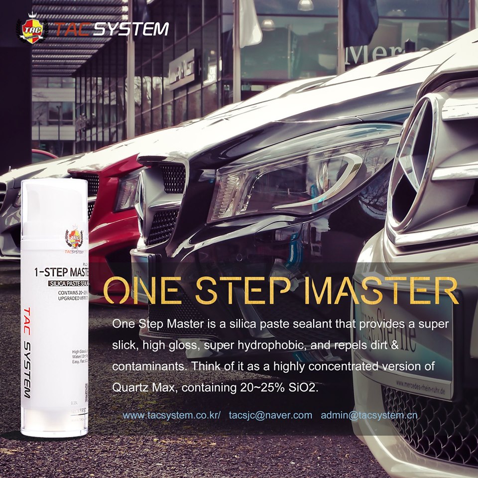 One Step Master is a silica paste sealant that provides a super slick, high gloss, super hydrophobic, and repels dirt & contaminants. Think of it as a highly concentrated version of Quartz Max, containing 20~25% SiO2.